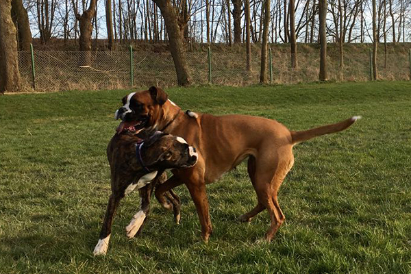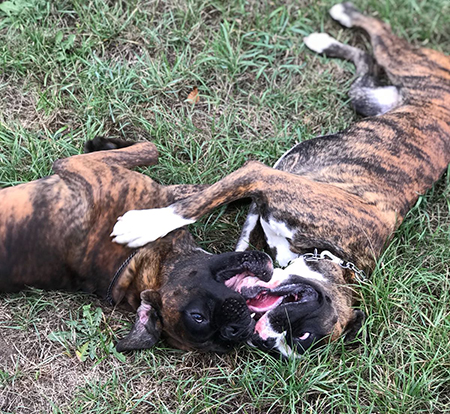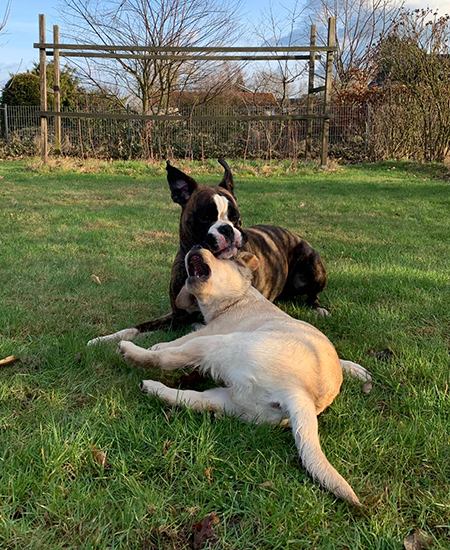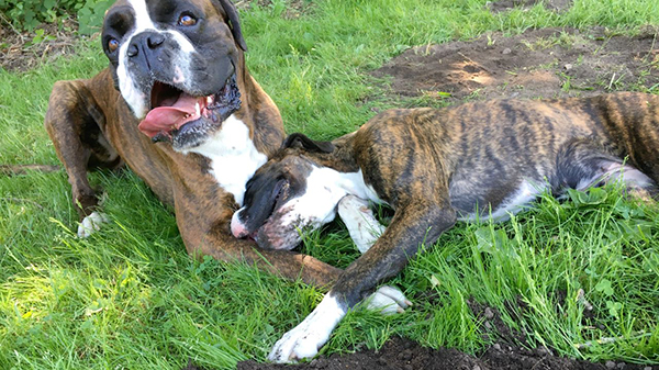 Baila und Batou nach dem Übungsbetrieb auf dem Hundeplatz ...